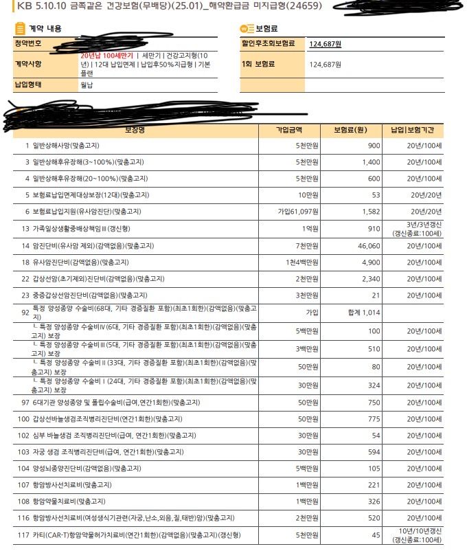 여성분이신데 KB 보다는 진단비쪽은 농협이나 한화로 알아보시는게 일단 보험료는 더 저렴하구요