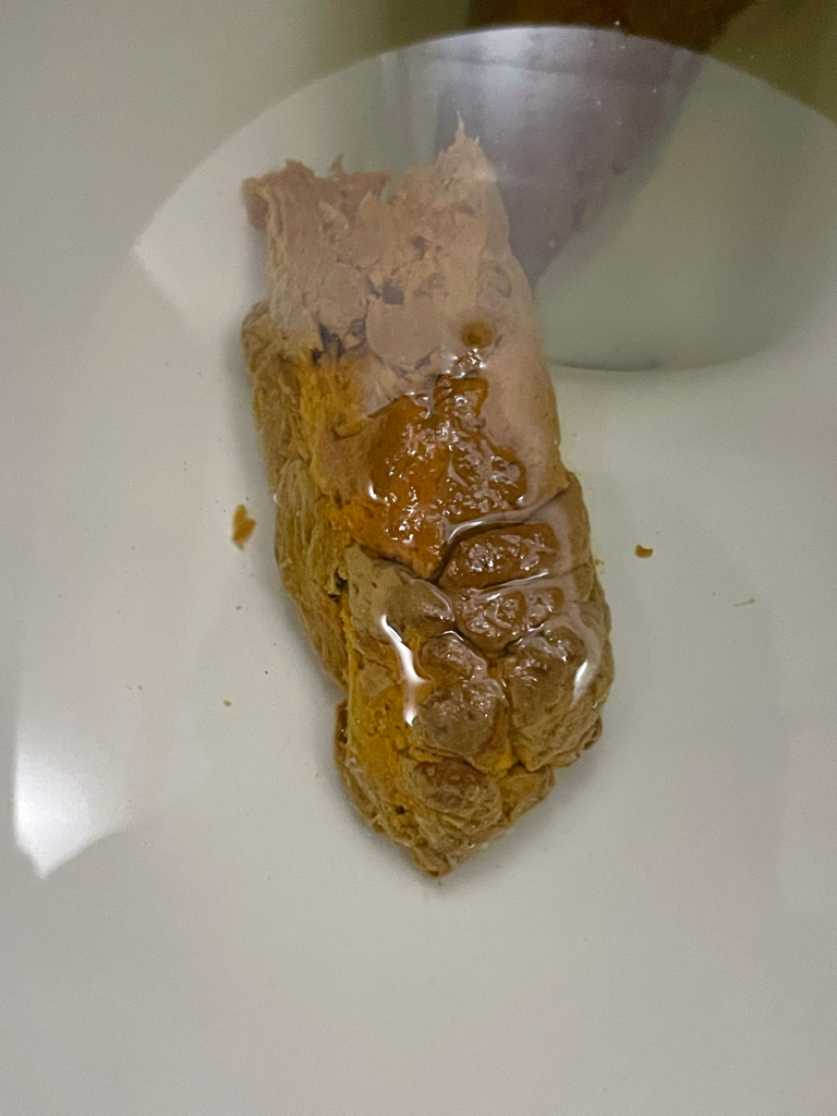 정상변입니다. 염려하시는 회색변은 그냥 변 모두가 회색으로 보입니다. 하얀 찰흙 처럼 보인다고 하면 이상이 있다고 생각하면 됩니다.