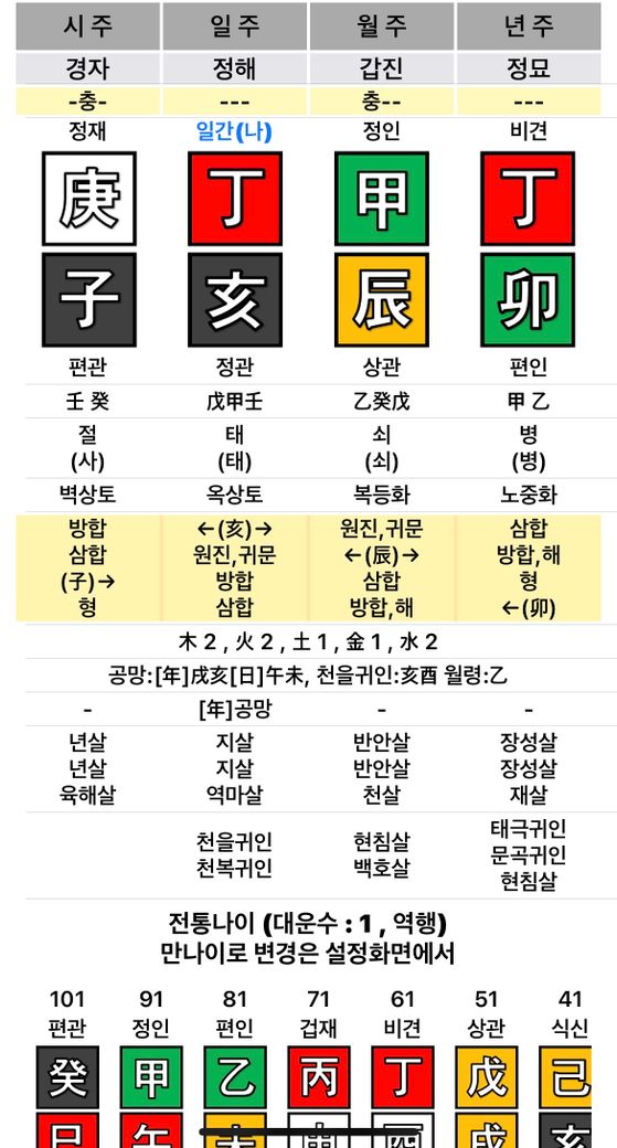 남성분 사주엔 정재가 있어서 안정적인 재물운이 보이고