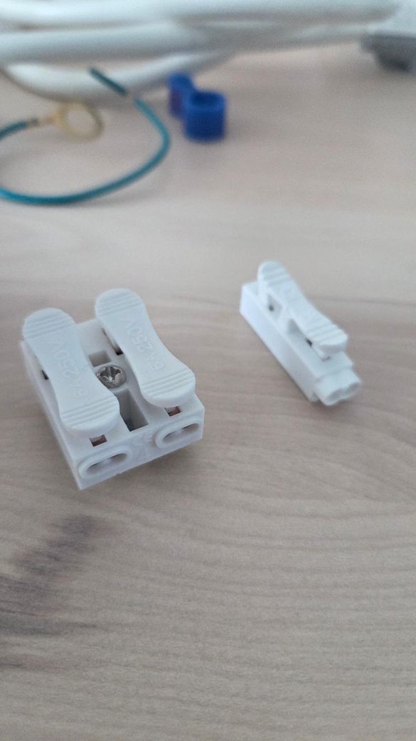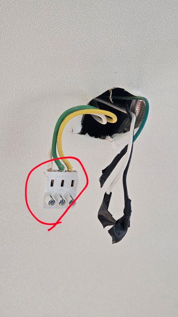 사진의 초록 노랑선이 연결된 흰색 커넥터는 접지용으로 전등에서는 보통 연결하지 않고 그대로 두면 됩니다 절연테이프로 감긴 흰색 검은색 선이 실제 전원선으로 새 전등의 파랑 갈색 선을 이 두가닥에 각각 하나씩 연결하면 됩니다