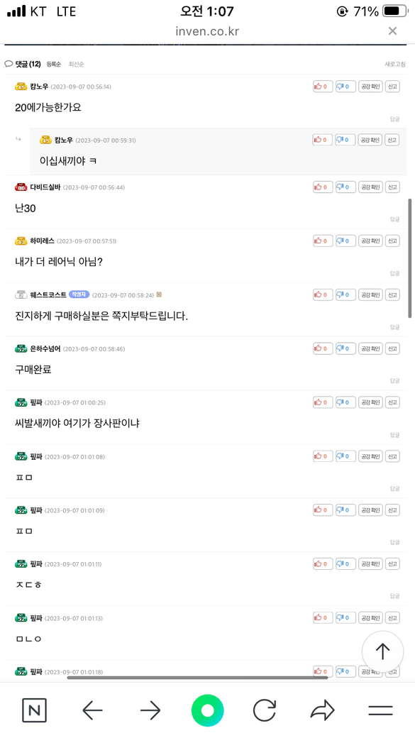 인벤이라는 커뮤니티에서 댓글로 쌍욕을 먹었어요.