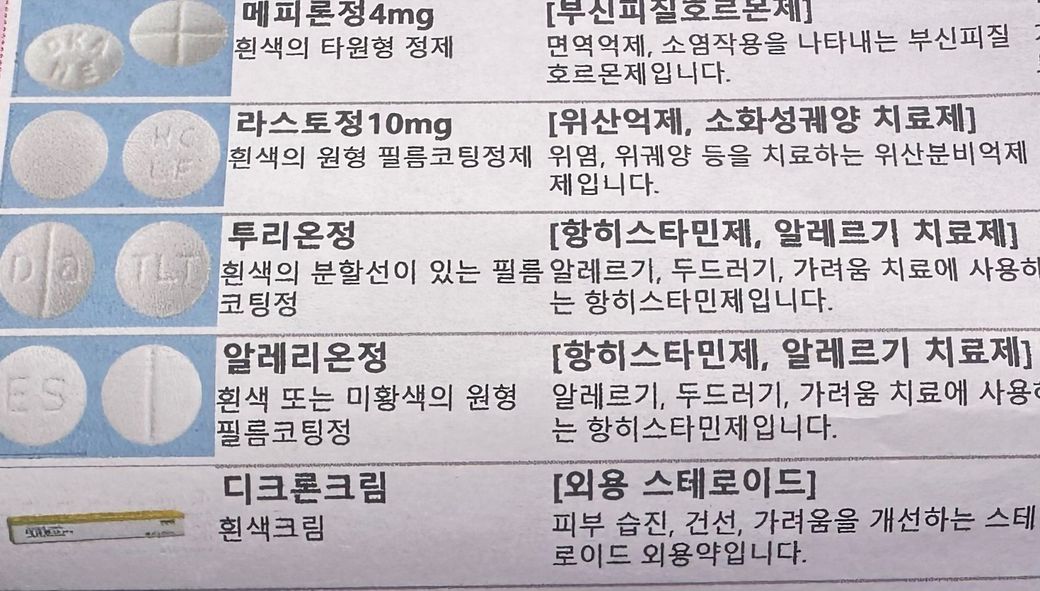 피부과에서 처방받은 약을 복용하면서 필요한 경우 타이레놀을 추가로 복용하셔도 괜찮습니다.