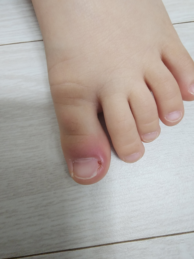 아이가 뛰어다니다 보면 발톱 옆으로 상처가 생기고, 염증과 통증이 유발될 수 있습니다.
