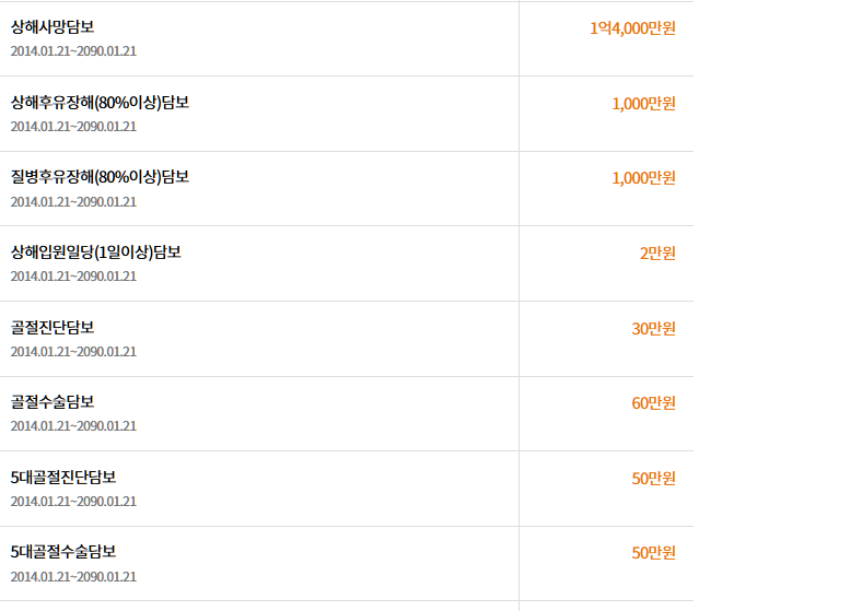 보니깐 이렇게 상해후유장해, 깁스 골절 수술 진다금 등있더라구요.