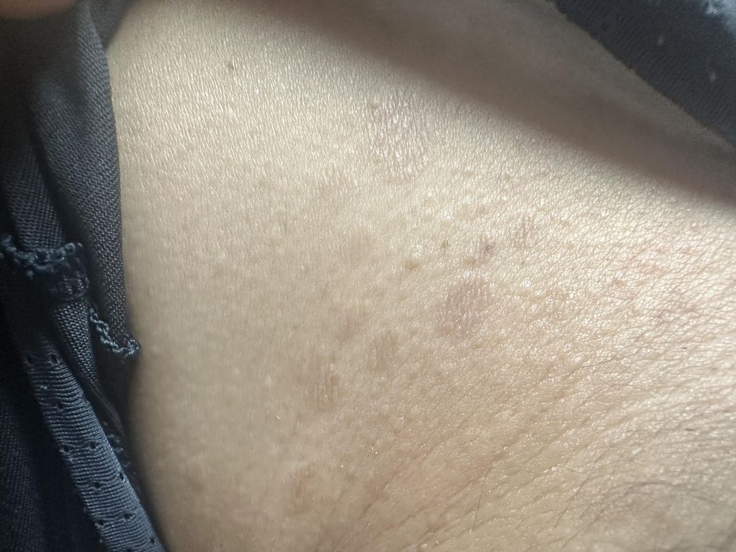 어깨쪽에 수포? 물집? 같이 납작한 것들이 여러군데 있는데 이게 뭘까요..?