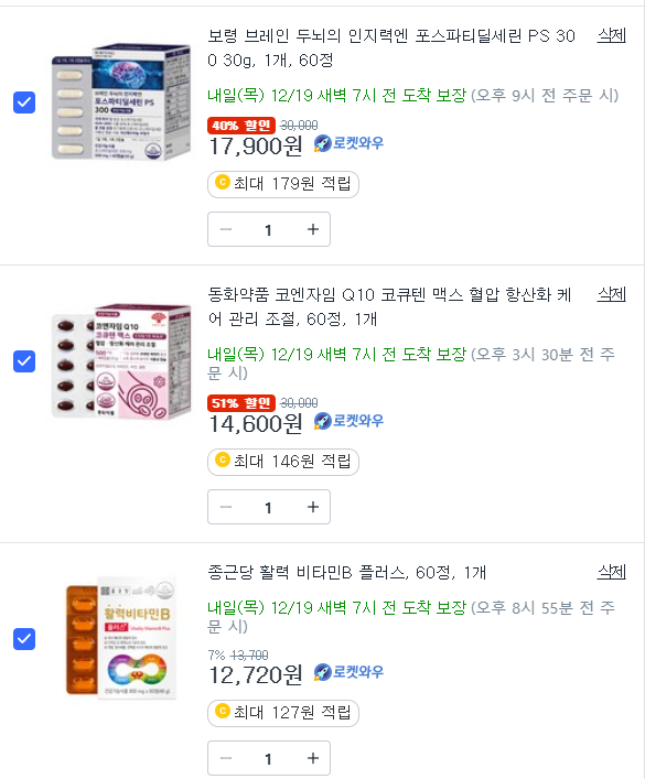 포스파티딜세린, 코큐텐, 비타민B종합제를 사려고 하는데 성분이 겹쳐서 뭘 사면 좋을까요?