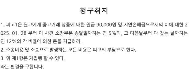 1. 청구취지와 청구원인 상 청구금액이 일치하지 않습니다. 이를 일치시키기 바랍니다. 일치시키고 청구취지및청구원인변경 신청서를 제출하기 바랍니다. (청구취지에는 90,000원을 청구한다고 되어있으나 청구원인에는 90,000원 및 손해금도 청구한다는 취지로 보입니다.)