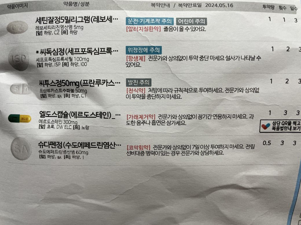 치과약에서 씨트클러를 빼고 나머지만 복용하시면 되겠습니다. 이비인후과약에도 항생제가 포함되어 있네요.
