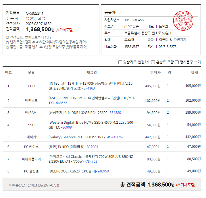 영상편집과 포토샾 일반사무업무를 보기 위해 한대 만드려고 하는데 아래 사양으로 충분 할까요??