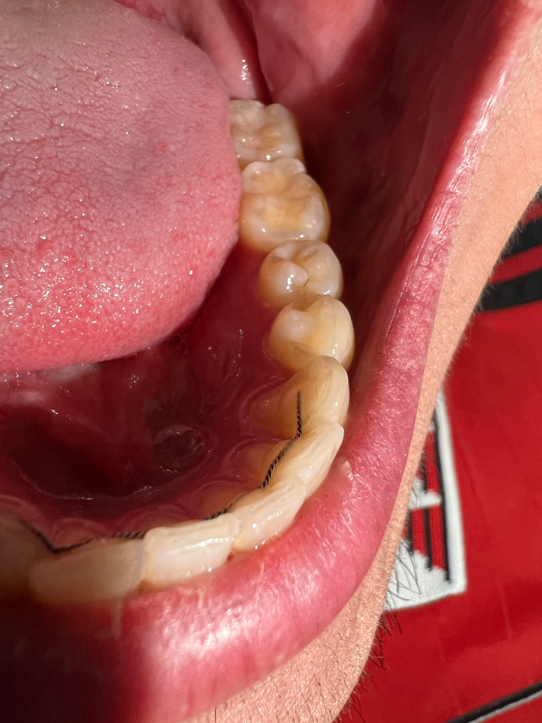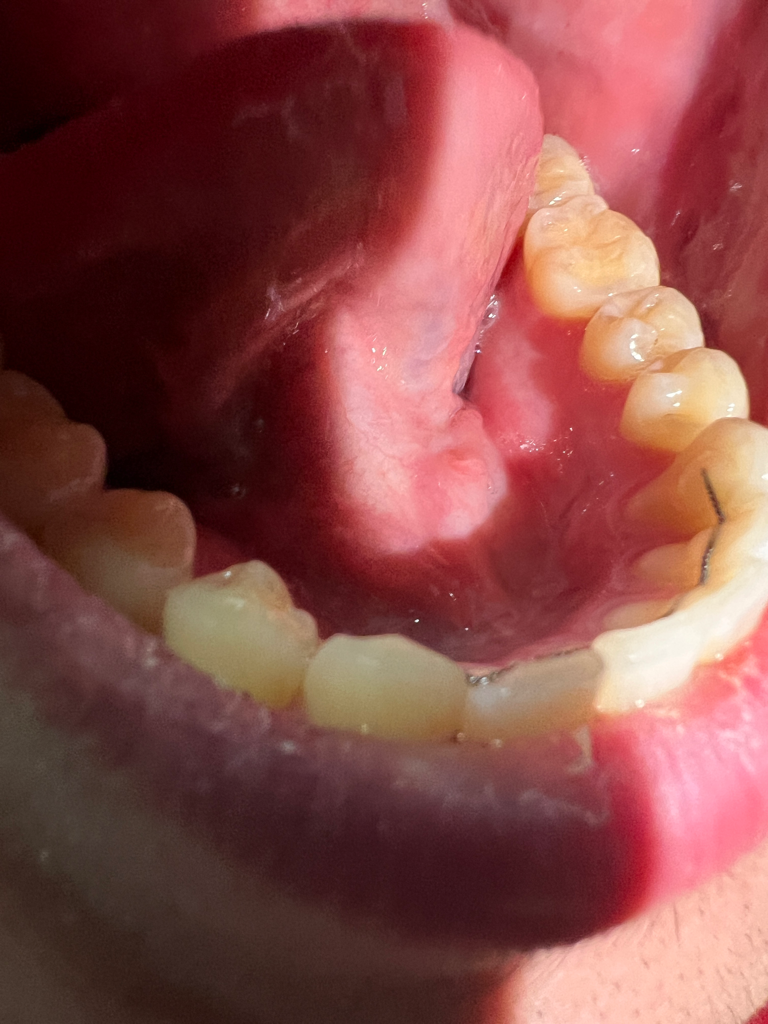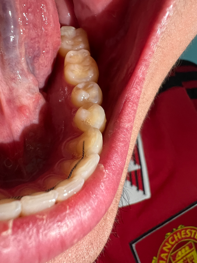 말씀하신 사진상으로는 큰 문제가 없어 보이나 씹었을 때 아프다면 치아 파절이 있을 가능성도 있습니다. 따라서 x-ray 및 CT 까지 찍어봐야 치아 뿌리 및 주변 조직에 대해 정확히 알 수 있을 것으로 보입니다. 계속해서 통증이 나타난다면 치과 방문 후 검사를 해보시길 바랍니다.