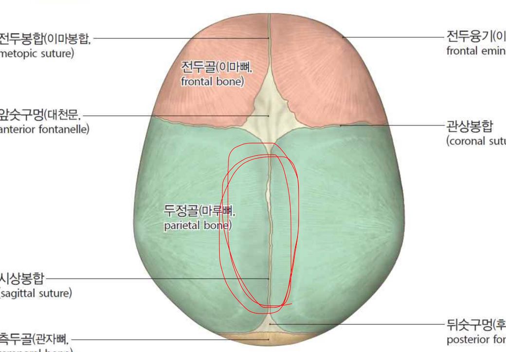 두개골 함몰이 되는 구 같아요. 누르면 기분나쁘게 아파요