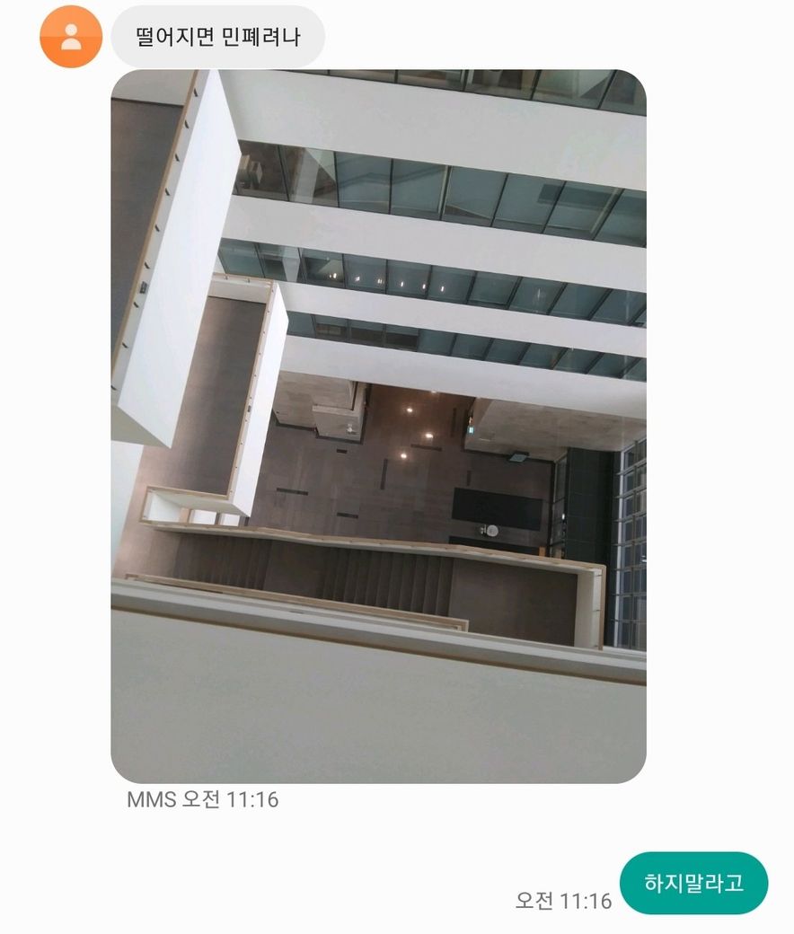 카카오톡 오픈채팅방에서 만난 사람입니다. 첨엔 깊콘 같은걸 주고 자기랑 사귀자 이렇게 말을 해서 별로라고 생각했습니다 나중엔 연을 끊자고 해서 알겠다고 했고 그냥 잊은 채 살았는데 어느날 카톡 차단을 풀어달라며 연락이 오고 답을 안하면 전화하겠다 답을 해달라 이렇게 말해서 연 끊자고 했으니 우린 남남이다 이러고 저도 넷상에서 만난 사람이라서 신뢰도 안가고 별로라고 생각했습니다 . 근데 자기가 죽으러 가겠다 옥상에 간다 이러면서 사진을 찍어 보내주며 작별인사를 하겠다 이런식으로 말을해서 제가 무섭다고 하지말라고 했는데도 저한테 계속 그런식의 말을 하며 오늘 이런 사진을 받았습니다. 옛날에 아는 지인이 자살하여 죽은적이 있어 이런말 듣는 것 조차 괴로운데 계속 저한테 이런말들을 합니다. 그럴때면.내가 사람죽인것 같아서손도떨리고 밥도못먹고 잠도못자는데 어떡할지모르겠스2니4ㅏ너무 무서운3ㅔ 이사람이 죽어도 저는 잘못이없는걸까요..제대로 말리지않은것도 죄겠지요...