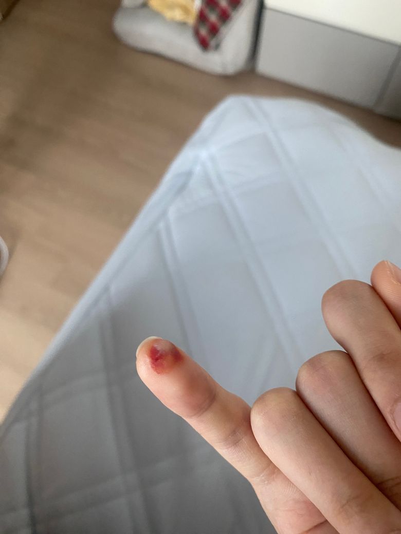 어제까지 항생제연고와 습윤밴드를 쓰다가 너무 더디게 낫는거 같아서 어제 밤부터는 통풍방식으로 그냥 연고만 얇게 바른 후 개방하고 자고 일어났습니다.