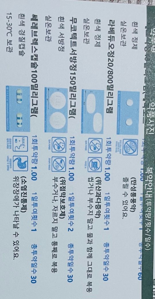 전에 먹던 소염진통제(비모보정500/20mg)때문인지 위통이 있어서 제가 위보호제좀 추가해달라고했거든요