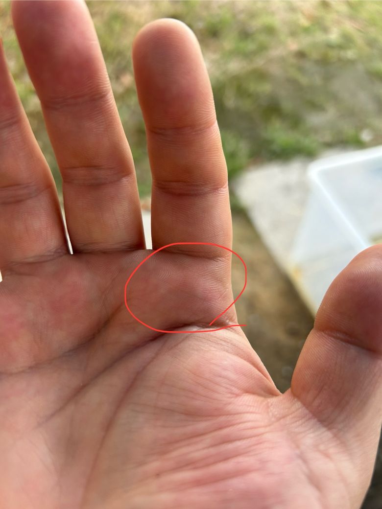 무리한 일로 인하여 손바닥 관절 부위 염증이 있으신 것 같습니다.