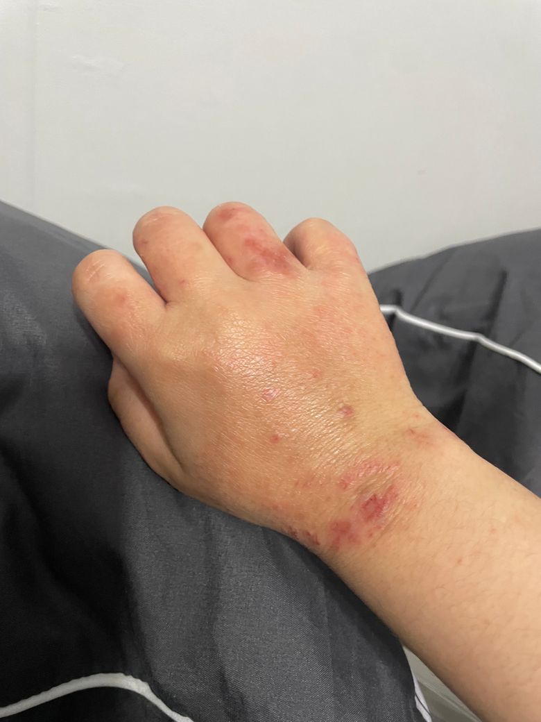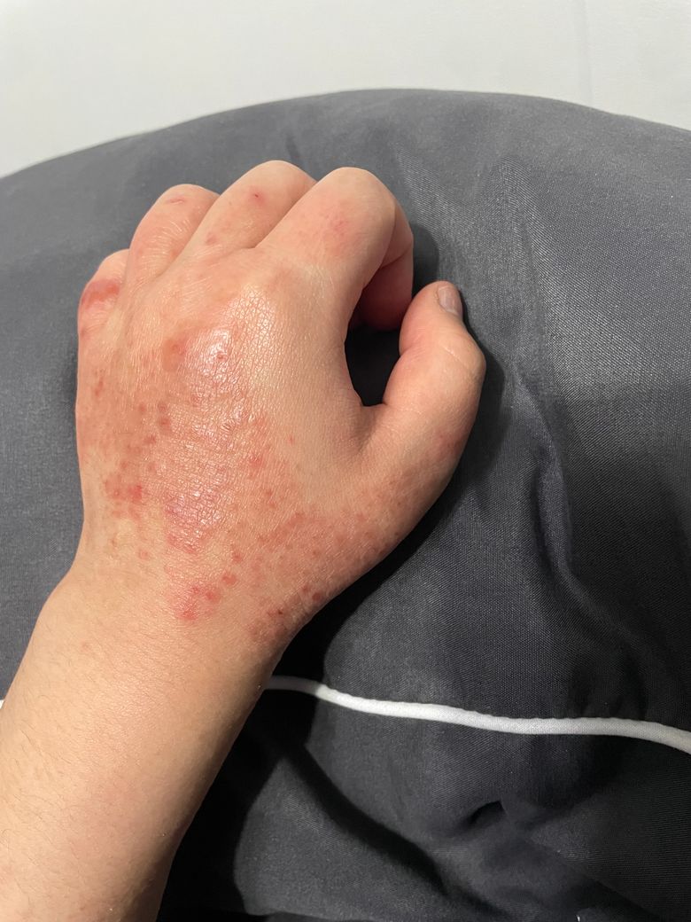 횟집에서 일하며 물에 자주 닿는 환경, 손등과 손목에 국한된 발진, 가려움, 작은 수포와 같은 증상은 직업성 접촉성 피부염에서 흔히 볼 수 있는 양상입니다. 접촉성 피부염은 통증보다는 가려움이 더 흔하다는 특징도 있고, 손, 손목, 손등 등 자극받는 부위에 주로 발생합니다.