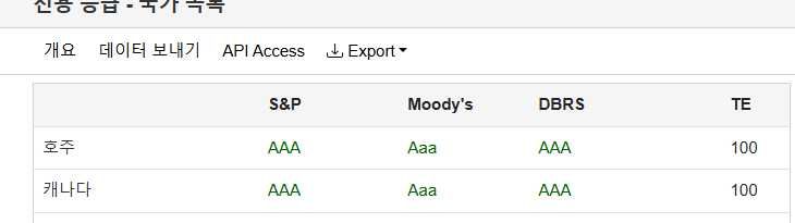 TE (Trading Economics)는 신용평가 기관들의 데이터를 수집해 제공하는 플랫폼입니다.