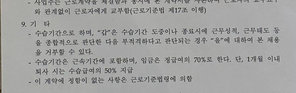 제 근로계약서(사진첨부)를 보시면 사장님께서 옛날 근로 계약서?를 가져오셔서 수습기간에 대해 이렇게 명시되어있고,