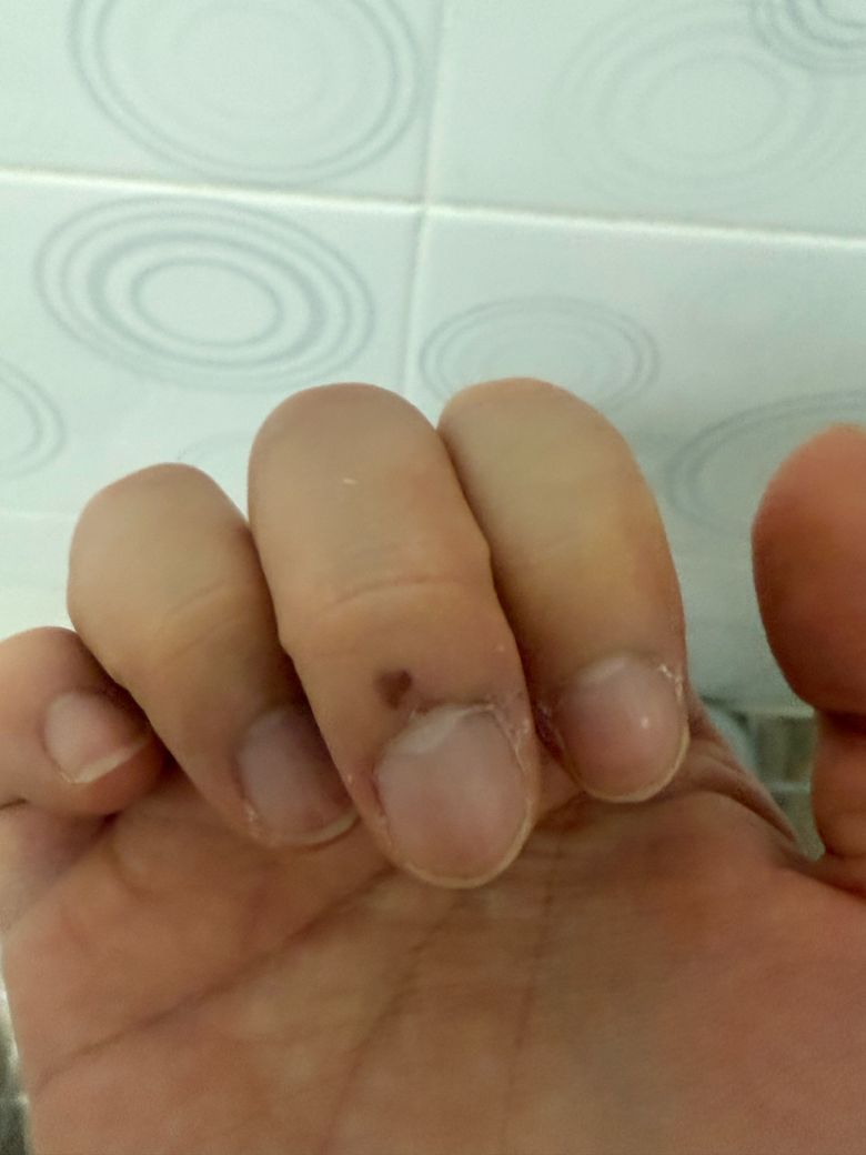 원래 5년전쯤 생겼던 조그만한 점? 반점?이 작년 말쯤 너무 커진것같아 병원에 방문하니 흑색종일 가능성도 배제할 순 없는데 위치가 조직검사했을때 손톱이 비정상적으로 자랄 수 있다해서 냉동치료로 없에보았습니다.
