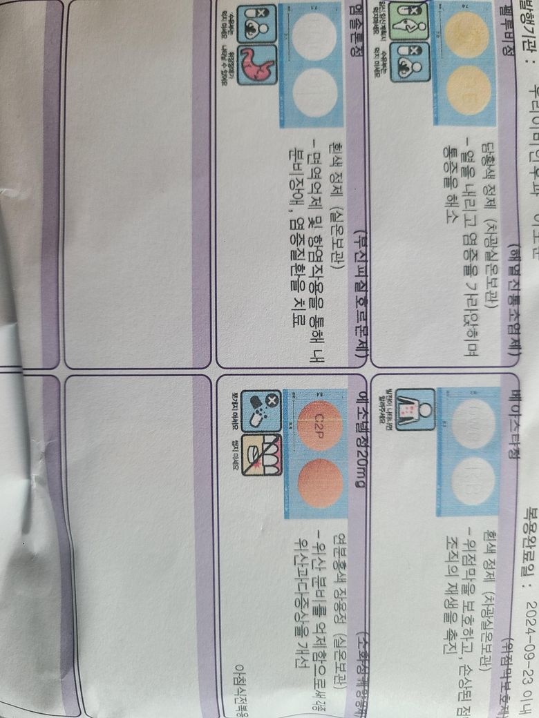 처방받으신 약은 소염진통제,스테로이드제등으로 위장장애가 있을 수 있으므로 식후또는 간단한 간식섭취후 약을 복용하시길 바랍니다.