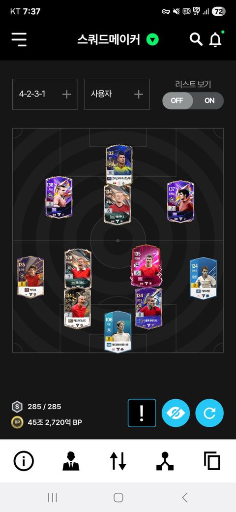날두 타게터로 쓸거면 리턴두 금카로 급여, 돈 아끼세요. 그리고 퍼디치같이 시즌 촘촘한 선수들은 차라리 하위 시즌 금카 써서 급여 아끼고 풀백이랑 키퍼 고급여로 맞추세요. 제가 지금 님이 올린 팀 상대로 만난다 하면 오른쪽 풀백이 개약하니까 무한 쓰루로 뚫을듯