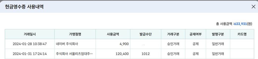 현금영수증 상세내역을 보니 현금영수증 일반거래로도 매월 현금영수증이 잡혀있어요.