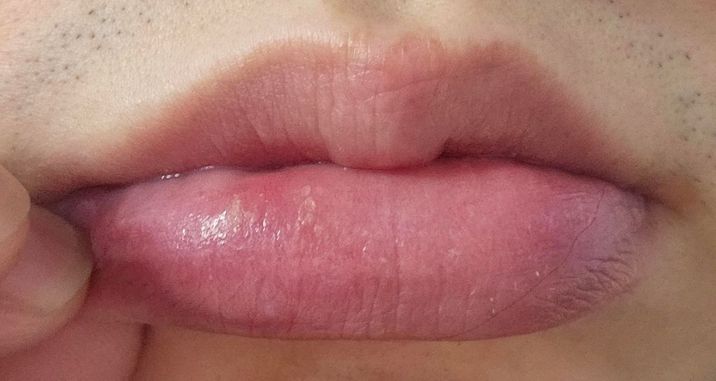어제 밥먹다가 갑자기 약간의 통증과 함께 아주 작은 물집이 생겼다가 가라앉은 후 오늘 점심에 밥 먹은후 다시 살짝 올라왔는데 통증은 없습니다.