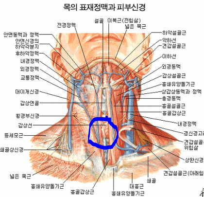 목의 이부분을 누르면 기침이 나옵니다