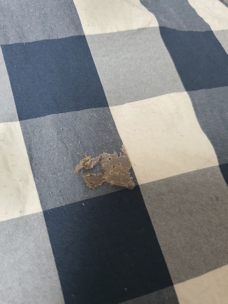 피부에서 떨어져 나온 각질일 가능성이 가장 커보입니다.