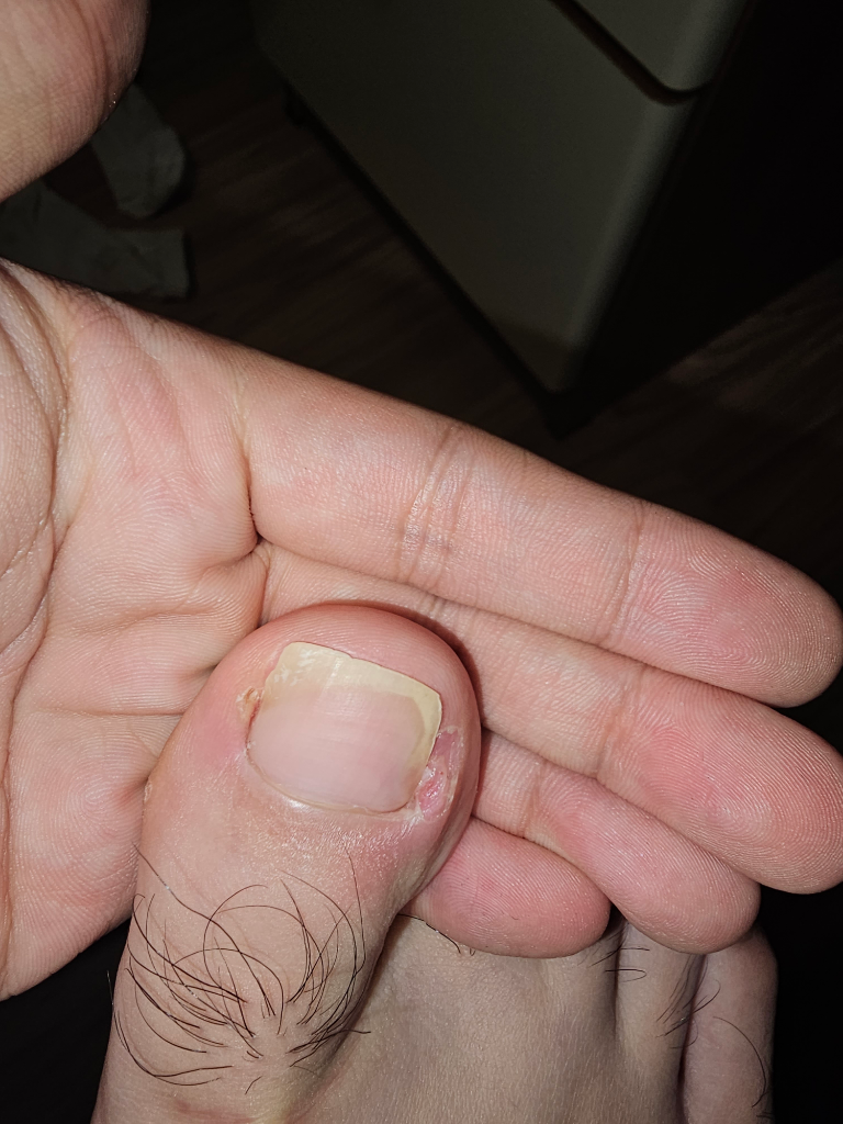 고름이나 육아종처럼 보이는 소견은 딱히 없어 보이지만 발톱 주변의 피부가 마치 궤양이 생긴 것처럼 보입니다. 관련하여서는 정형외과적으로 내성발톱 수술을 받아서 치료하는 것이 가장 적절할 것으로 사료됩니다.