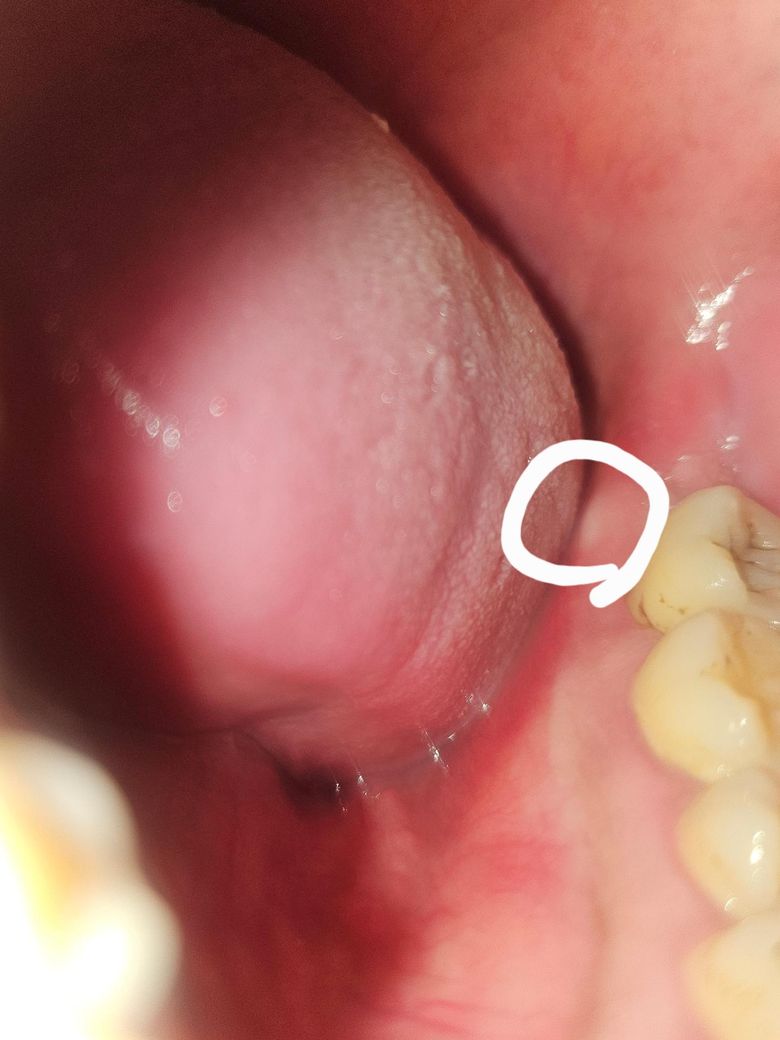 사진속 동그라미 처럼 잇몸에 고름이 있습니다.