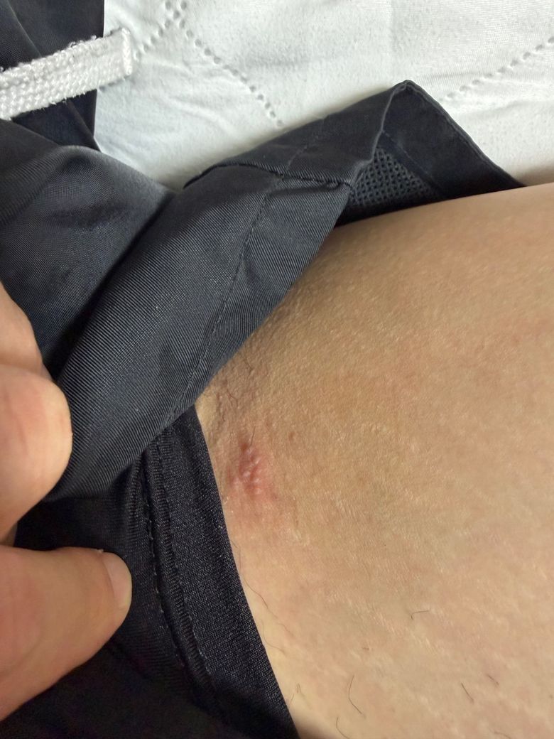 다만 병변 위치가 전형적인 음경이나 귀두가 아니라 사타구니 외측이라는 점은 다소 비전형적이며, 청바지로 인한 마찰 이후 발생했다는 점을 고려하면 접촉성 피부 자극이나 마찰 후 2차 염증 가능성도 함께 감별해야 합니다. 대상포진도 형태상 유사할 수 있으나, 보통 더 넓은 범위로 퍼지고 통증이 더 뚜렷한 경우가 많습니다.