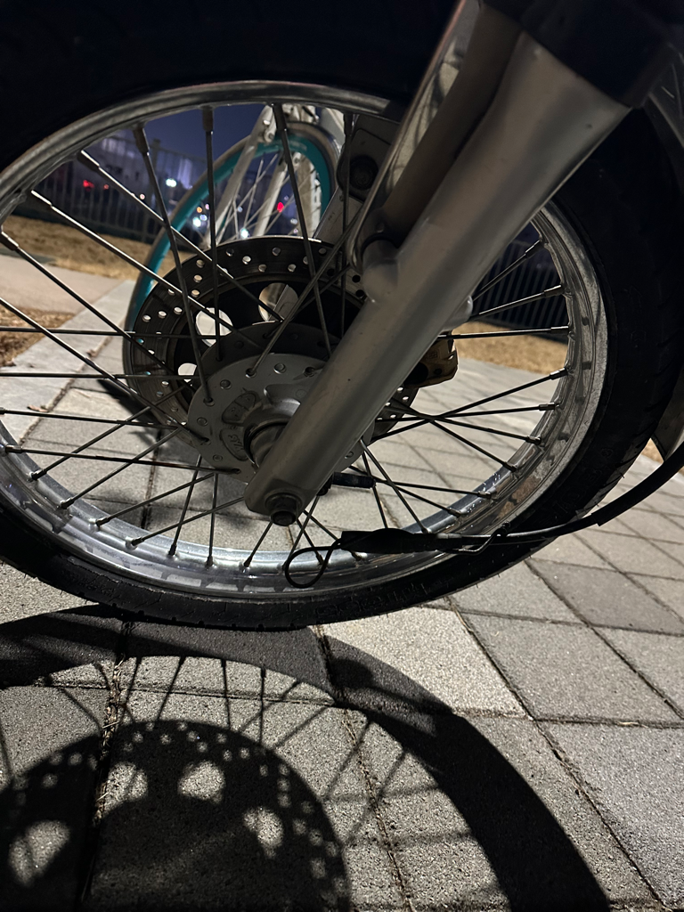 여러각도에서 보여주시면 확인이 제대로 가능할것같습니다만, 보통 브레이크 라인외에 전륜에 라인이별도로들어갈일리별로 없습니다.