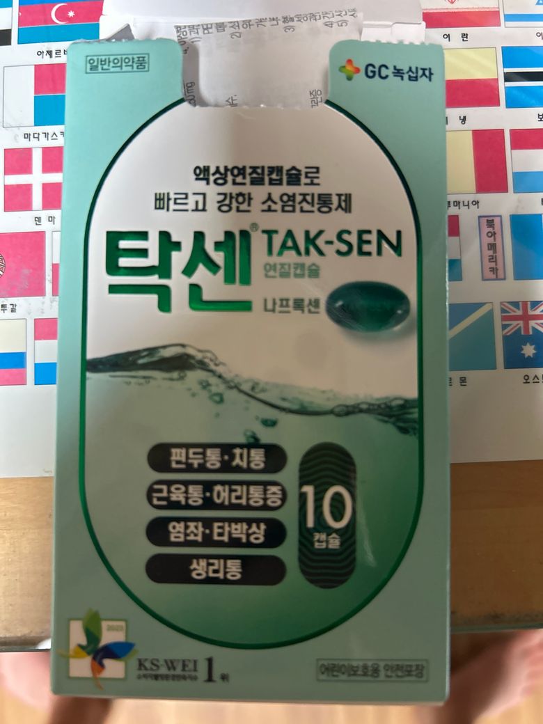 소염제를 복용하는 것이 더 좋습니다만 다른 약이 없다면 탁센연질캡슐이라도 복용하세요.