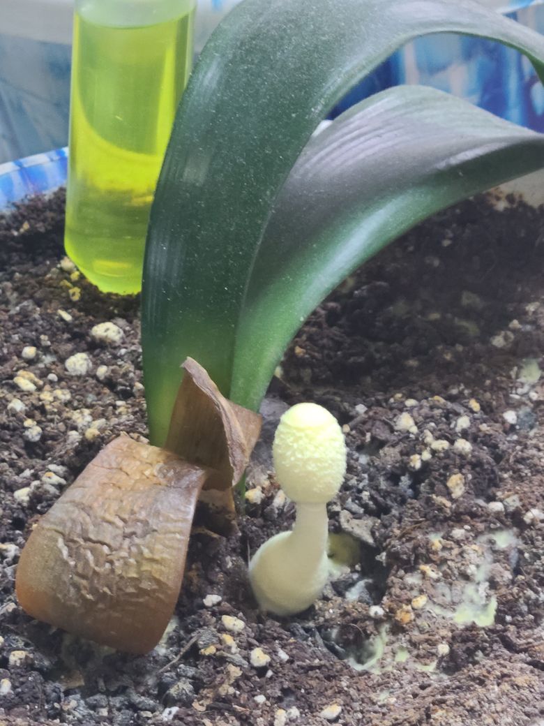 군자가 꽃이 안난지 아주 오래고..영양제늘 계속 꽂아 두었근데..버섯같은 노란 것이 올라왔네요..잎 사이가 아니라 좀 옆어..이게 무엇인지..
