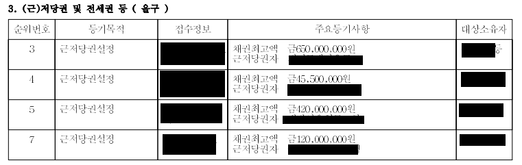 그 이후 은행을통해 4번에 걸친 총합 12억원의 근저당이 잡혀있는 것을 확인했습니다.