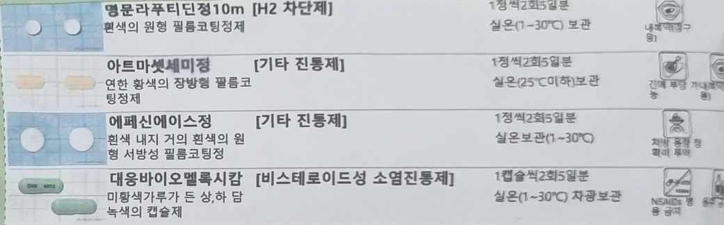 (병원에서 처방받은약은 사진으로 첨부합니다)
