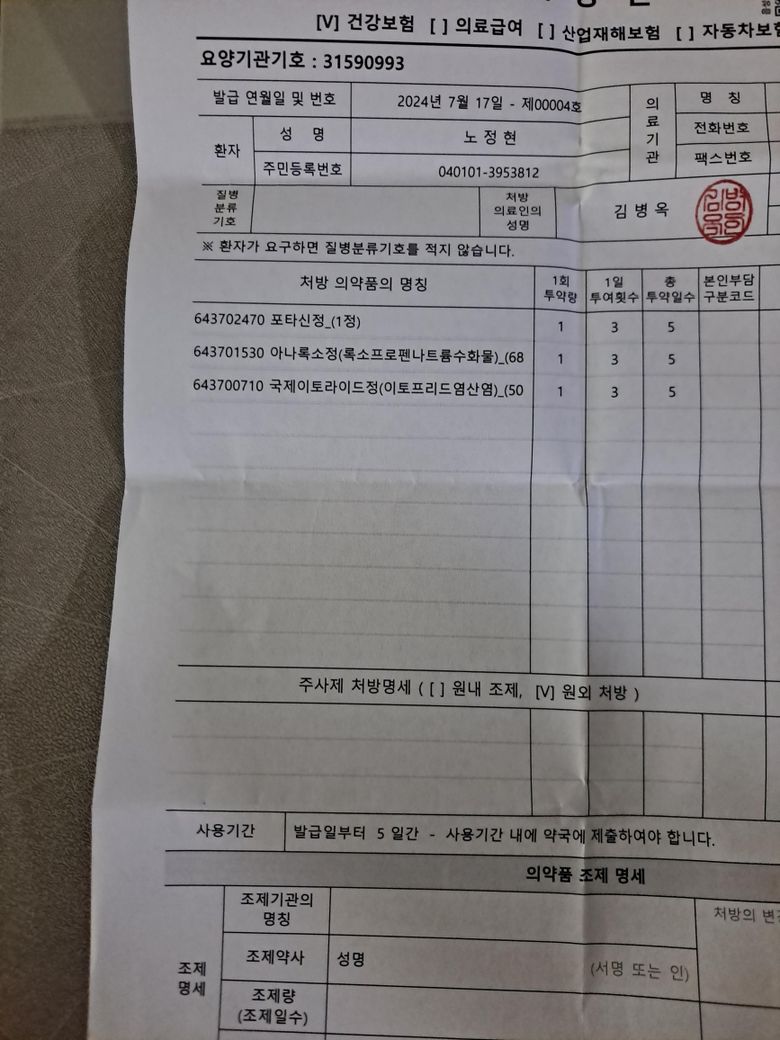 여담으로 지금 사진에 주민등록번호가 적힌 사진을 업로드 하셨으니 내리시는걸 권해드립니다.