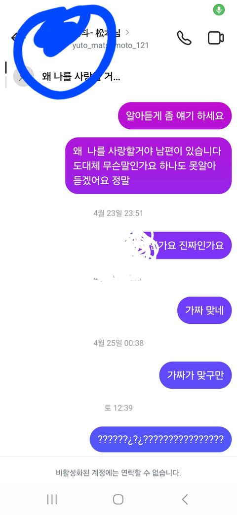 인스타그램에서 상대방에 인스타가 비활성화 됐어요 저를 차단한걸까요 근대 상대방에 비활성화 돼서 사진은 뜨길래 왜 사진이 뜨지 이해가 않가서 물어본거에요