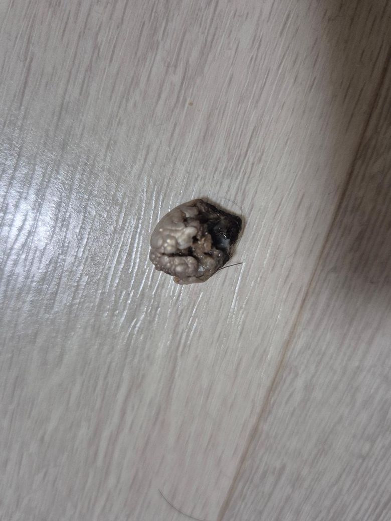 어제는 배꼽속에 회색덩어리가 보였는데 아침에 일어나보니 배꼽위에 덩어리가 붙어있어서 샤워하면서 자연스럽게 떨어졌는데 이게 뭔가요?