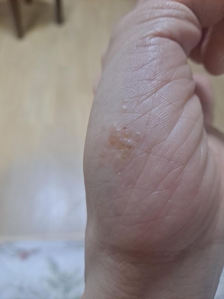 손 날에 수포를 동반한 간지러움 뭘까요 ㅜ