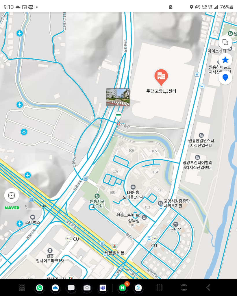 터널끝자락쯤 좌회전하기전에 트럭의머리가 보이고 정차하였고