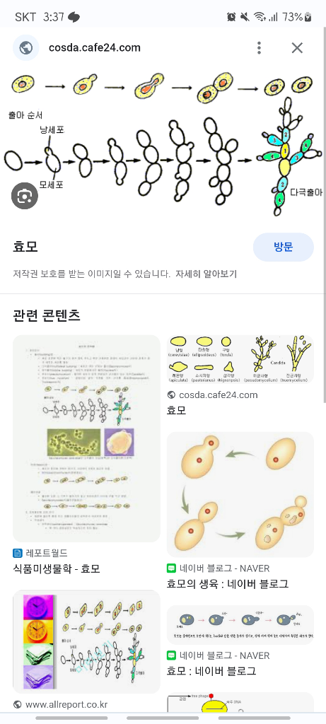 안녕하세요. 새벽에 갑자기 생명과학 책을 읽은 고등학생입니다. 책에서의 궁금증이 생기어 질문 드립니다. 생물의 특징 중 하나인 생식과 유전에 대한 설명에서 효모와 히드라의 출아법이 눈에 띄더라구요. 출아법에 대해 더 알고파 찾아보다가 효모의 출아법을 이미지로 보게 되었습니다. 그런데 효모의 모세포가 자손을 하나만 만드는 것 같지 않는 것처럼 보였습니다. 그 이미지엔 마치 3개정도의 자손을 만드는 것과 같이 그려져 있었습니다. 이를 보고서 궁금한 질문들이 떠올라 올려봅니다. 혹시 3개의 자손을 만들어내는 게 간략하게 표현하기 위함인가요? 효모의 모세포는 죽기 전까지 평균 몇 개의 딸세포을를 남기는 건가요? 또 히드라는 어떤가요? 아님 제가 생각한 방향이 잘못된 방향인가요? 아래는 제가 궁금증이 생긴 당시 화면을 캡쳐해 놓은 겁니다. 궁금증을 해결해 주실 분을 기다리겠습니다.