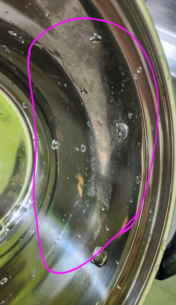 일반 스텐레스 냄비는 아무리 태워도 스텐레스 얼룩 지워졌는데 이건 다xx에서 5천원주고 산 스텐레스 냄비라서 그런지 닦이지가 않습니다.