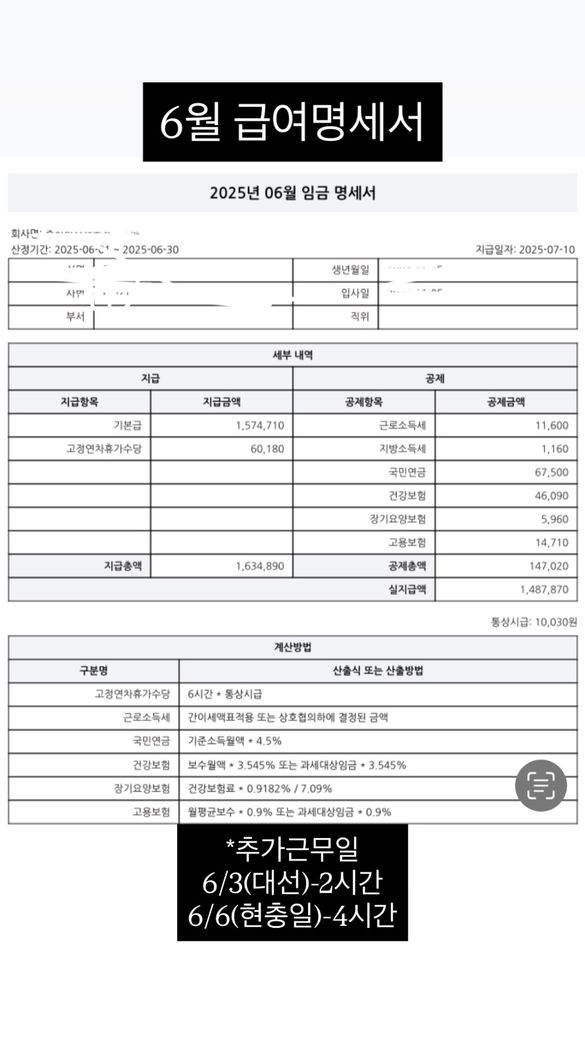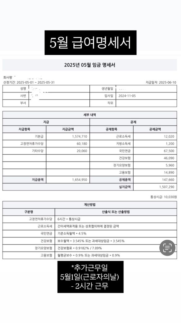 공휴일 근무수당이 지급 안된거 같아서 계약서, 근 넉달간의 급여명세서 함께 올립니다.