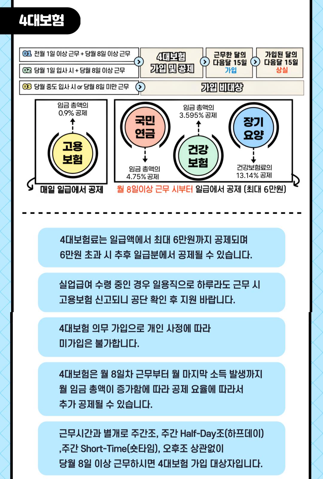 기본적으로 7일 이상 근무하게 되면 보험이 가입이 되고