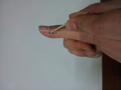 사진처럼 이쑤시개를 45도 뉘어서 하세요.