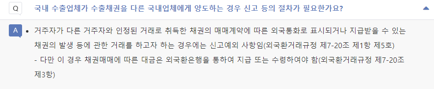 1. 국내수출업체가 수출채권을 다른 국내업체에게 양도하는 경우 신고 등의 절차가 필요한가요?