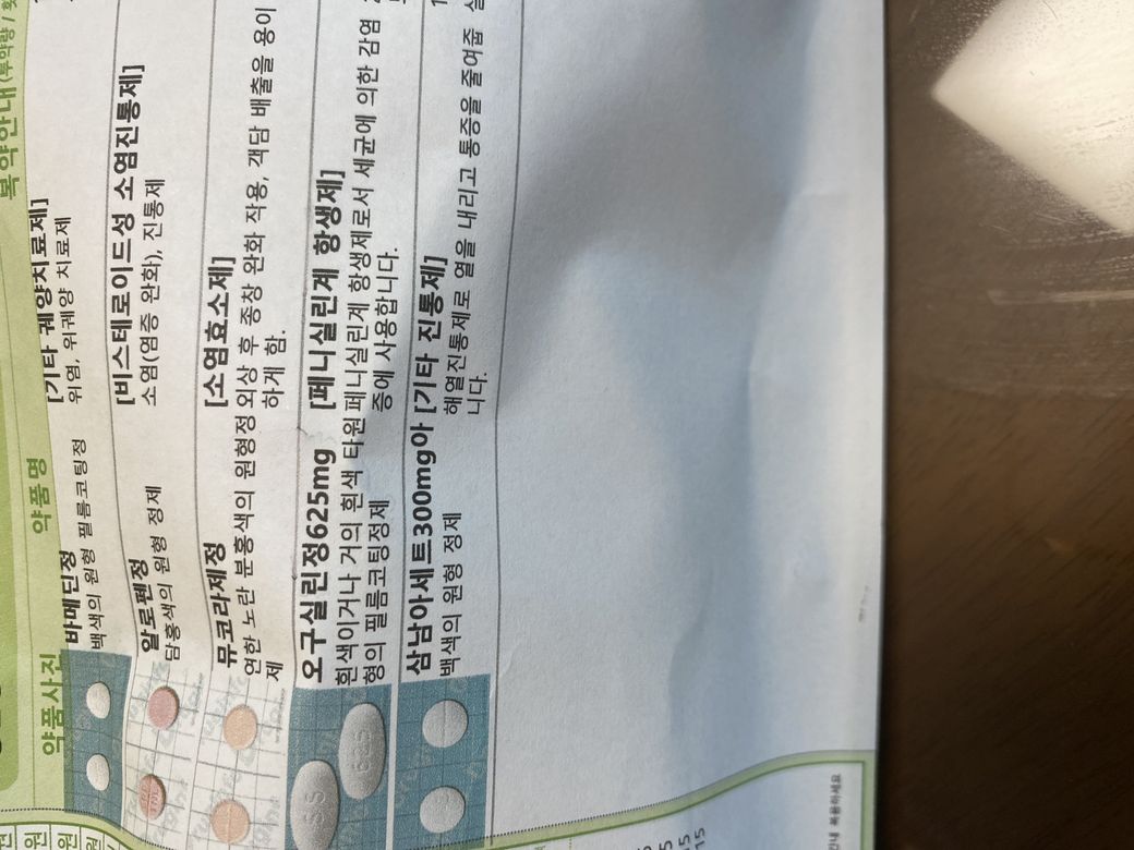 처방받으신 약에는 소염진통제와 항생제가 있습니다.