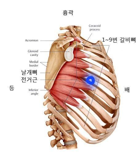 늑골사이 늑간근을 풀어주면 호흡에 관여하는 근육이 이완되어 편해지고 말씀하신부위 주변에 대포혈이 위치하여 명치가 시원해지고 소화기능이 개선됩니다